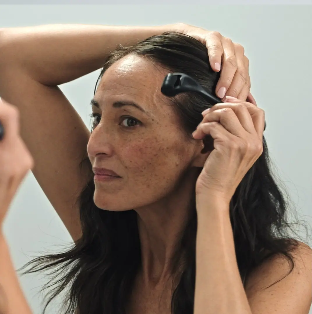 Step 1 (optional): Part hair into sections to easily access your scalp.Step 2: Gently roll the dermaroller over your scalp 4-5 times in all directions, lifting it between passes.Step 3: Apply OS-01 HAIR directly onto your scalpStep 4: After each use, sanitize with alcohol spray.